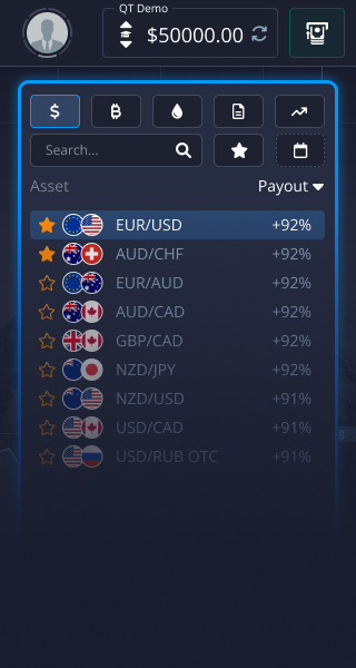 Сауда үшін әртүрлі санаттарда активтердің үлкен саны қолжетімді.