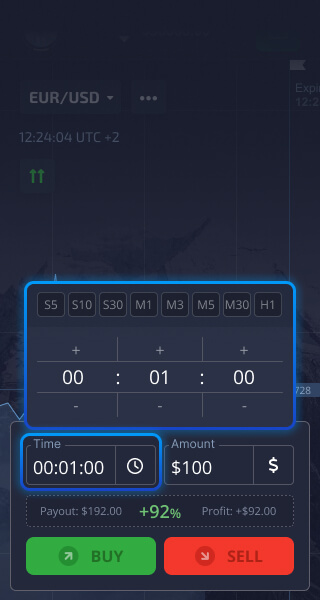 Егер сіз активтің бағасын өседі немесе сәйкесінше төмендейді деп ойласаңыз, «Сатып алу» немесе «Сату» батырмасын басыңыз.