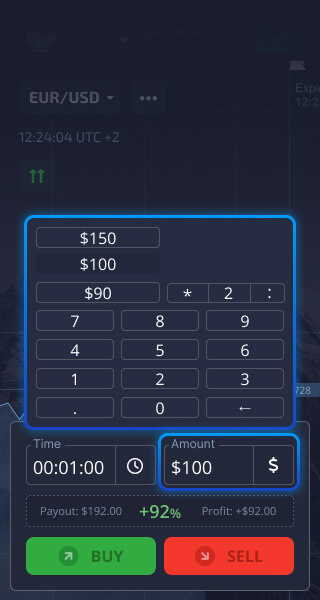 Инвестиция сомасын белгілеңіз, бұл сома мәмілені ашу үшін сауда шотыңыздың теңгерімінен алынады.