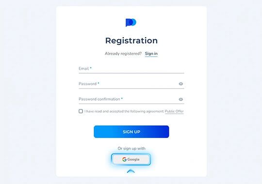 가장 편안한 옵션을 선택하고 계정 등록을 진행하세요. Google을 통해 가입하신 경우, 이메일과 비밀번호로 PO TRADE 계정에 로그인하려면 비밀번호를 여기에서 재설정해야 할 수도 있습니다.