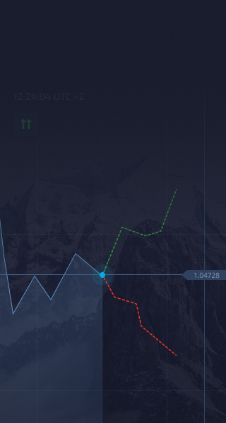 На графике показано, как меняется цена актива. Вам необходимо сделать прогноз: как изменится направление цены в заданный период времени, и нажать купить или продать в соответствии с вашим прогнозом.